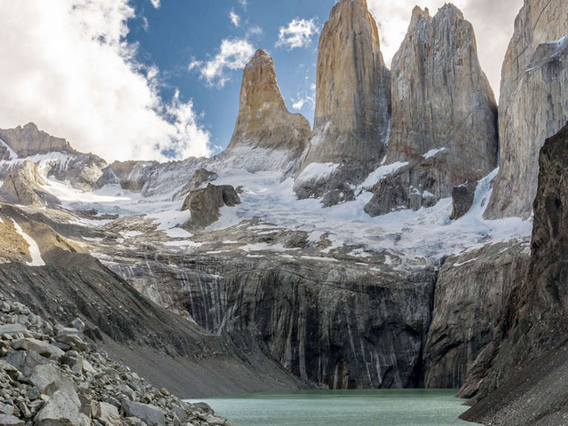 On day two we will depart for Torres del Paine for a full-day excursion. This adventure will include iconic viewpoints like Cerro Castillo and azure lakes like Lago Toro, Salto Grande, Lake Pehoe and Lago Gray, famous for its floating icebergs. Day three features a boat trip to the captivating Balmaceda and Serrano Glaciers. Enroute we have the opportunity to view sea lions, Andean condors, elephant seals and several cormorant colonies right from the deck of the ship. As your boat closes in on Mount Balmaceda the impressive glacier that spills off the sheer face of the mountain comes into view. We continue a short distance and dock near the Serrano Glacier where you may disembark for a short walk around a small lake formed by the melting glacier. On day four it's time to lace up your walking boots as we hike through the wilderness to the top of a magnificent viewing point, offering true tranquility, phenomenal views over the fjords and towards the Torres del Paine National Park, and an unmissable opportunity to feel at one with nature.