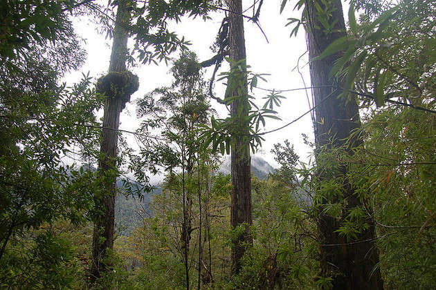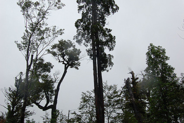 The Alerce or lahuán in Mapuche (Fitzroya cupressoides) is an evergreen tree that reaches a height of 45 meters and whose diameter can exceed 4 meters wide. It was declared «Natural Monument» in 1976, which prohibits the cutting of every individual living in the Chilean Territory.