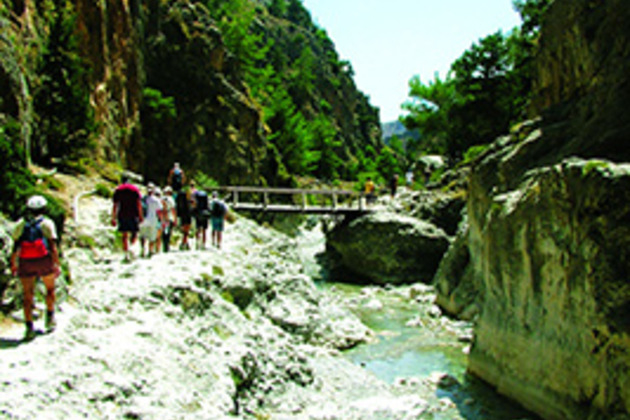 Pull on your walking boots for this hike through Samaria Gorge. Running for 18km, this spectacular ravine is the longest in Europe. So it's a serious five to six hour trek that's not for the faint hearted. We'll start by driving though the White Mountains to your starting point, the Xyloskalo staricase, which zigzags more than 200 metres down into the gorge. Once at the botton, it's a case of letting your legs do the work while you enjoy the scenery. We'll pass tiny chapels, walk between the high ravine walls and maybe spot some of Crete's wild 'kri-kri' goats. The highlight, though, is the 'Iron Gates'; the narrowest section of the gorge, where the 300 metre-high walls stand just three metres apart. At the end we'll reach the seaside village of Agia Roumelli, where if you've made good time, you can grab a swim or relax in a taverna. Then we'll catch a boat along the coast to where your coach awaits. Great for outdoors types. Children must 10 years or older.