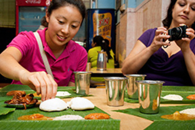 Malaysia is a fascinating melting pot of cultures and there is no better way of experiencing it all than from a plate. We stroll through theIndian-influenced neighbourhood of Brickfields, where the architecture, music and food is loud and colourful. Sample delicious Indian dishes served on a banana leaf and seek out sweet vendors for sugary morsels like fresh banana fritter, sticky, sweet gulabjamu or the local favourite, cendol (shaved ice, plum sugar, kidney beans and coconut milk jelly).