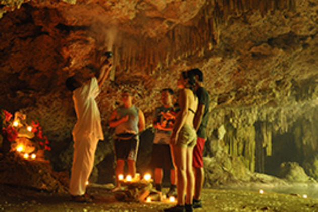 The National Geographic declared Tulum to be the 4th best beach in the world. Learn about the history and culture of the ancient Mayas. Enter the amazing Sac-Atun, the longest subterranean river system in the world, explored and recommended by specialized divers from the National Geographic Snorkeler. Go scuba diving in the Nohoch Nah Chiich cenote, surrounded by ancient stalactites and stalagmites. Speed through the impenetrable Mayan jungle in our 4X4 vehicles. Walk down a jungle path surrounded by lush tropical vegetation and discover the biodiversity of this unique natural reserve. Abseil down into the beautiful Yaxmuul cenote, an incredible subterranean swimming pool and swim in crystal clear waters. Soar above the treetops in a thrilling zip line. Go deep into the jungle and experience a traditional Maya purification ceremony in the depths of a mysterious cenote. With so much excitement you’re bound to have worked up a healthy appetite so it’s time to recharge your batteries with a traditional buffet lunch including different flavoured waters and home-made tortillas. Enjoy the perfect balance: nature, Mayan culture and adventure.