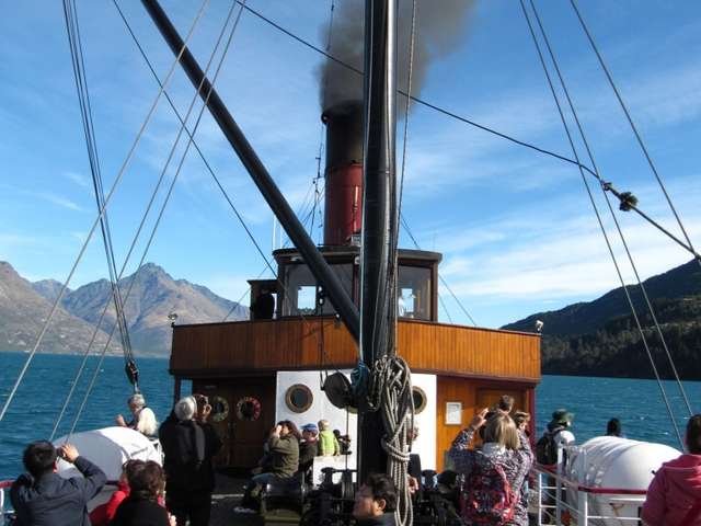 Join a scenic cruise to Walter Peak on board the vintage steamship TSS Earnslaw, departing from Queenstown. The original steam engines can be seen in operation from the open viewing area. During the cruise, the ship's pianist entertains with a variety of old favorites and you are encouraged to join in sing-a-long around the piano! You can also visit the Focsle Museum, steeped in the history of the TSS Earnslaw. Complimentary tea and coffee are provided on the cruise and delicious cafe style food can be purchased.