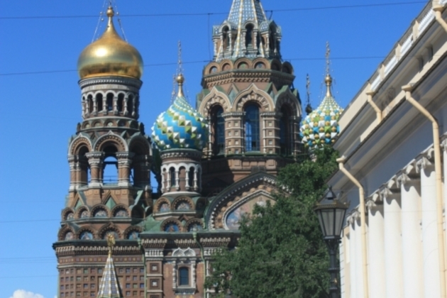 Church of the Savior on Spilled Blood. The interior of the church is completely covered with mosaics. It was built in the old Russian style as a memorial to the Russian Emperor Alexander II on the very spot where he was mortally wounded by a terrorist.
