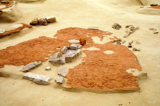 Based on the shape and proportions of the settlement it can be inferred that the builders of Lepenski Vir had a certain amount of mathematical knowledge. In the centre of each house there was a fireplace, with a sculpture made of round rocks and representing human figures. Initially they were just fishlike human heads, with fish or deer motifs and with some intriguing inscriptions on them: symbols resembling the coordinate system, sketches, letters, numbers and landscapes.