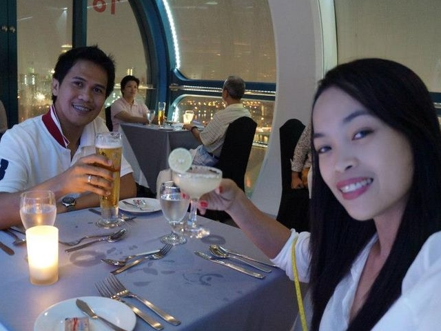 Enjoy a wonderful 60-minute fine-dining experience with panoramic views aboard the Singapore Flyer, the world's largest observation wheel. It towers above Singapore's iconic landmarks - Marina Bay, Singapore River, Raffles Place financial district - and features the world's first full-butler dinner service in the sky. You'll make two complete rotations over the course of 60 minutes on this architectural and engineering marvel.