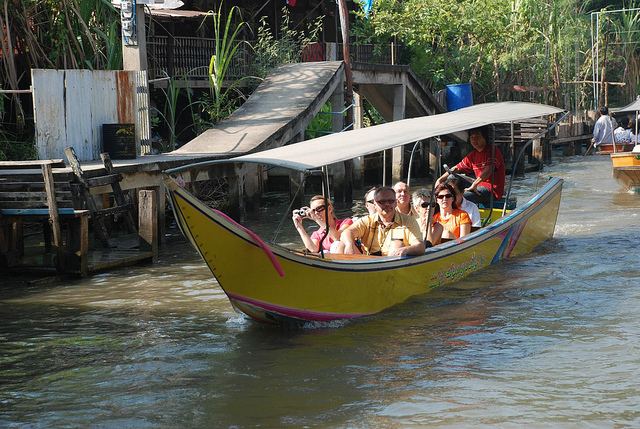 Take a private tour to get a glimpse of everyday life on the water in Thailand. Cruise along the Bangkok canals in a narrow, long-tailed motorized boat towards the Damnoen Saduak floating market, where you will see local vendors in their Thai style canoes, laden with colorful fruits, and vegetables, gently plying their way through the canals looking to sell their goods.