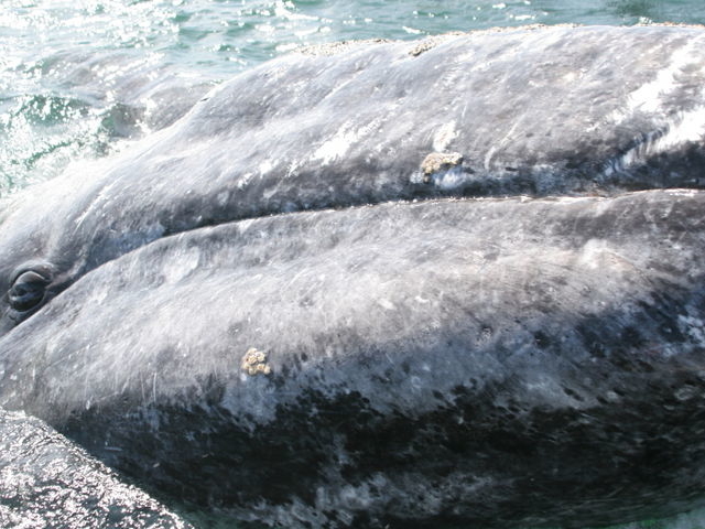 Between December and April the gray whale travels approximately 6,000 miles from the cold waters of the Arctic to the warmer waters of the Baja Coast. Here they give birth to their young and prepare them for the long trek back. On the return trip the young calves can frequently be seen swimming at their mother's side.